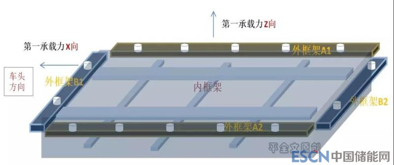 框架結構是托盤的一種結構形式,在前期 “三+6”一文中,曾經(jīng)詳細作過描述。框架結構更有利于輕量化,更利于不同結構的強度保證。