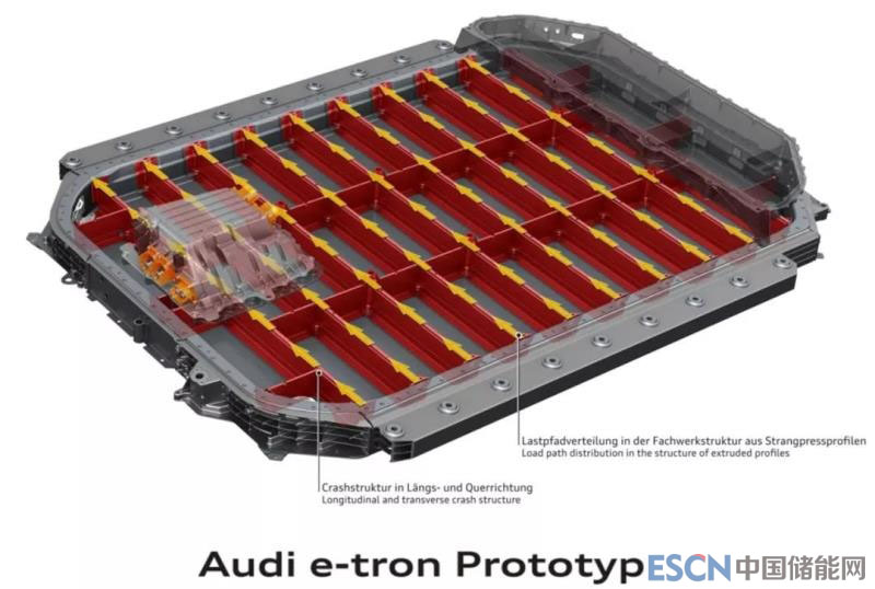 托盤的鋁制吊耳固定點應數(shù)量多,而且布置均勻,如下圖奧迪 e-tron鋁托盤案例所示。