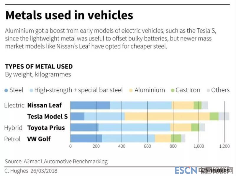 但其他大眾化車型選用材料中分量最高的卻是享有成本優(yōu)勢的高強鋼。例如日產(chǎn)Leaf、大眾高爾夫、豐田普銳斯,它們更傾向于在高強鋼板和異形鋼下功夫。