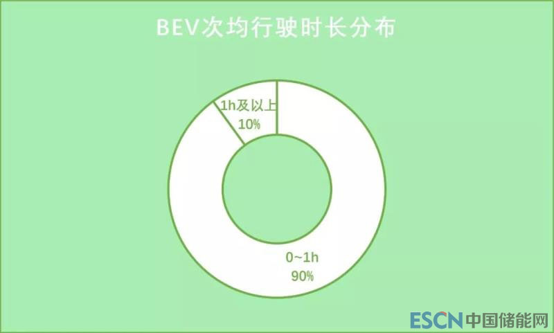 根據前期分享的BEV用戶次均行駛時長分布來看,BEV用戶次均行駛時長在0~1小時以內的占比高達90%,而次均行駛時長在1小時以上的用戶占比僅10%。