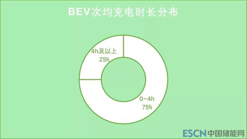 BEV用戶次均充電時長為2.83小時,次均充電時長在0~4小時內的用戶占比75%,次均充電時長在4小時以上的用戶占比25%。