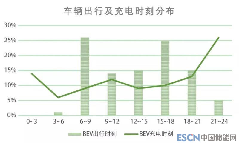 本文將主要通過BEV用戶的充電時刻、次均充電時長進行分析。同時,充電時刻將對比上一章節(jié)的新能源汽車用戶出行時刻分布,次均充電時長將對比次均行駛時長分布,探索BEV用戶出行特征和充電特征之間所呈現(xiàn)的數據分布特點,進一步揭示用戶充電習慣等特點。