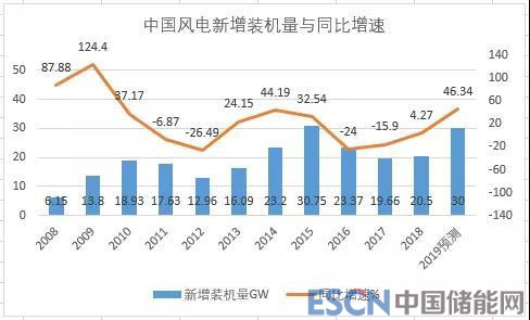 按照市場上幾家券商的普遍預(yù)測,在多重利好因素刺激下,2019年全國風(fēng)電新增裝機(jī)可能達(dá)到30GW左右,相比于2018年20.5GW裝機(jī),增速將超過46%。