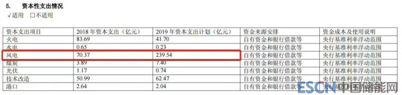 計(jì)劃投入的資金著實(shí)嚇人,2019年要投資239.54億元做風(fēng)電,而2018年公司風(fēng)電資本支出僅僅為70.37億元,同比增長2.4倍。
