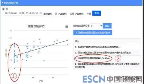 (3)相關(guān)性系數(shù)為0.48,可以看出能耗與產(chǎn)量的相關(guān)性較弱,而正常情況下相關(guān)性系數(shù)越接近1,說明該生產(chǎn)單元的能源性能越好。