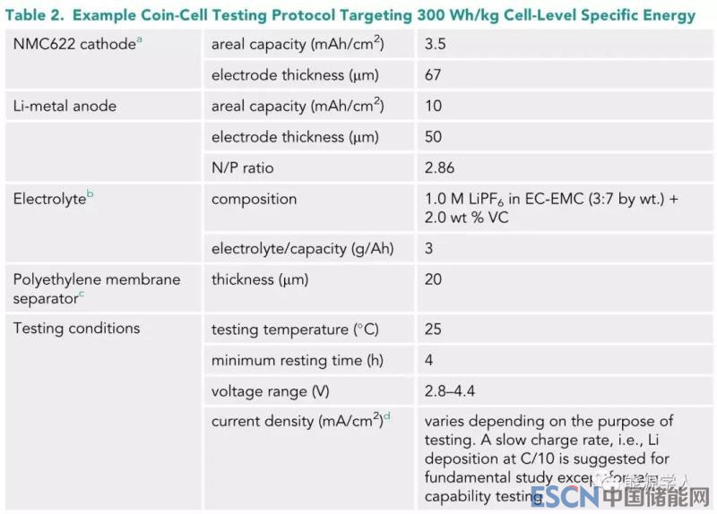 表二、以300 Wh/kg的扣式電池性能比的測(cè)試方案為目標(biāo)