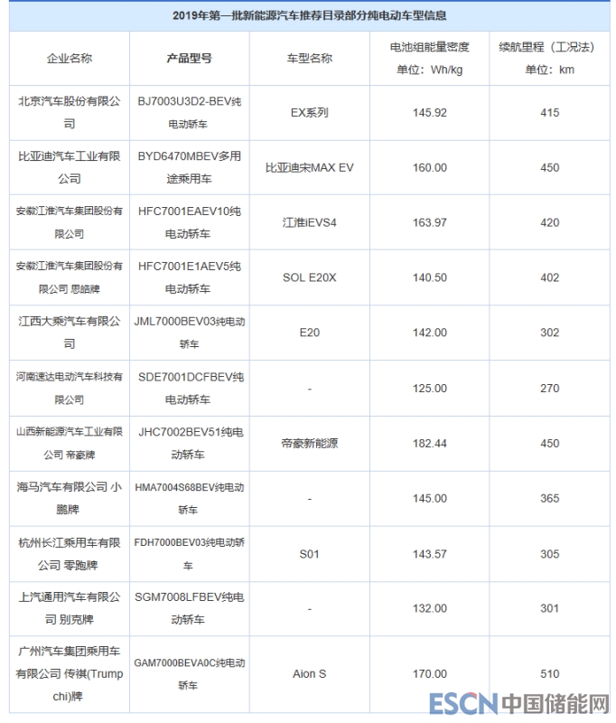 雖然2019年新能源補貼政策還沒落實,但2019年第一批推薦目錄已經(jīng)出爐,根據(jù)目錄來看,數(shù)量上和去年持平,并未受到政策的影響,其中純電動車型電池組能量密度和續(xù)航里程有了顯著地提高。其中吉利帝豪新能源的車型電池組能量密度達到了182.44Wh/kg,廣汽新能源Aion S的續(xù)航里程達到了510km以上。