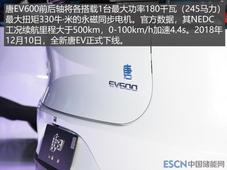 唐EV定位中型純電動(dòng)SUV,車(chē)身尺寸為長(zhǎng)4870mm/寬1950mm/高1725mm,軸距2820mm。外觀方面,唐EV整體造型與唐燃油版及唐DM比較接近,最大的變化在于格柵,全新的矩陣式格柵與此前王朝概念車(chē)保持一致,同時(shí)該車(chē)前包圍兩側(cè)采用了更大的鍍鉻裝飾。早前的申報(bào)信息顯示,新車(chē)或?qū)⑼瞥鯡V500、EV550和EV600三種續(xù)航的車(chē)型。其中唐EV600前后軸各搭載一臺(tái)最大功率180千瓦(245馬力)、最大扭矩330?!っ椎挠来磐诫姍C(jī)。根據(jù)官方公布的數(shù)據(jù),唐EV600的NEDC工況續(xù)航里程大于500km,0-100km/h加速4.4s。
