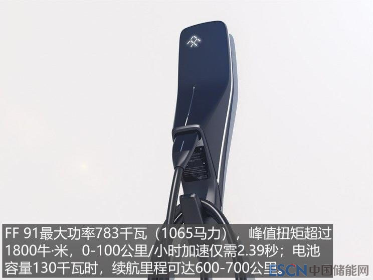 FF 91的動(dòng)力系統(tǒng)最大功率783千瓦(1065馬力),峰值扭矩超過(guò)1800?!っ祝@樣的數(shù)據(jù)使得它0-100公里/小時(shí)加速時(shí)間為2.39秒;電池容量為130千瓦時(shí),根據(jù)不同標(biāo)準(zhǔn),續(xù)航里程可達(dá)600-700公里,家用220V交流電從50%充滿需要約4.5小時(shí),而如果使用高功率直流充電系統(tǒng),充電一小時(shí)可實(shí)現(xiàn)500英里續(xù)航里程。
