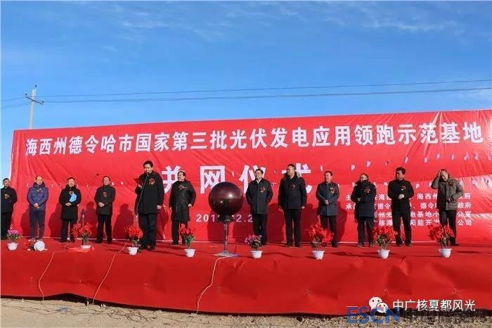 中國儲能網(wǎng)訊:12月28日,中廣核新能源德令哈光伏“領(lǐng)跑”基地5號100兆瓦項目實現(xiàn)全容量并網(wǎng)發(fā)電。該項目是國家第三批光伏發(fā)電應(yīng)用領(lǐng)跑者項目在青海省內(nèi)首個實現(xiàn)全容量并網(wǎng)的項目。12月29日青海省海西州德令哈市國家第三批應(yīng)用領(lǐng)跑示范基地并網(wǎng)儀式在中廣核新能源青海德令哈光伏領(lǐng)跑項目現(xiàn)場舉行。國家能源局新能源和可再生能源司、西北能監(jiān)局、水規(guī)總院、電規(guī)院、青海省發(fā)改委、能源局、國網(wǎng)青海省電力公司等領(lǐng)導(dǎo),海西州州長孟海,海西州委秘書長丁忠寶,新能源控股公司黨委委員、副總經(jīng)理張超群,青海分公司黨支部書記、總經(jīng)理徐世萍出席儀式。