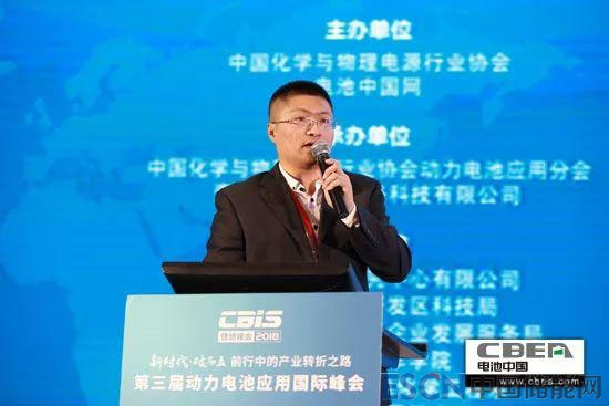 圖為桑德集團(tuán)智慧能源有限公司總經(jīng)理高淵博在CBIS2018“鋰想”峰會(huì)上發(fā)表主題演講