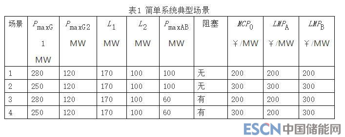 表格中,MCP0代表無(wú)約束出清的電價(jià),LMPA、LMPB分別代表約束出清下A、B節(jié)點(diǎn)的電價(jià)。