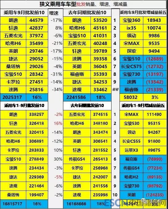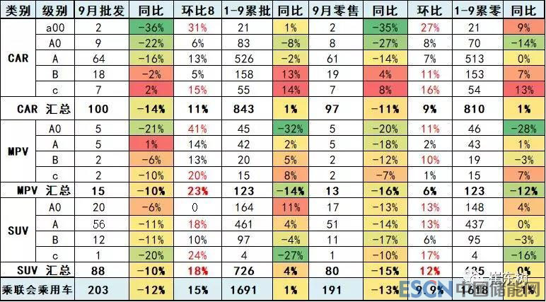 9月的SUV市場零售增速-14.5%,MPV市場零售增速-16.3%,轎車市場依托新能源走勢稍好。但依托合資新品增量的SUV批發(fā)增長強(qiáng)于轎車。
