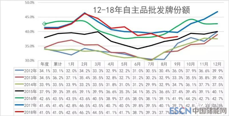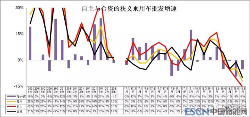 18年年度份額看的自主品牌走勢轉(zhuǎn)弱,年度批發(fā)增速0%,稍低于行業(yè)增速,零售也稍弱于行業(yè)平均。在15-17年自主持續(xù)超越合資后,18年以來自主面臨一定的調(diào)整壓力。