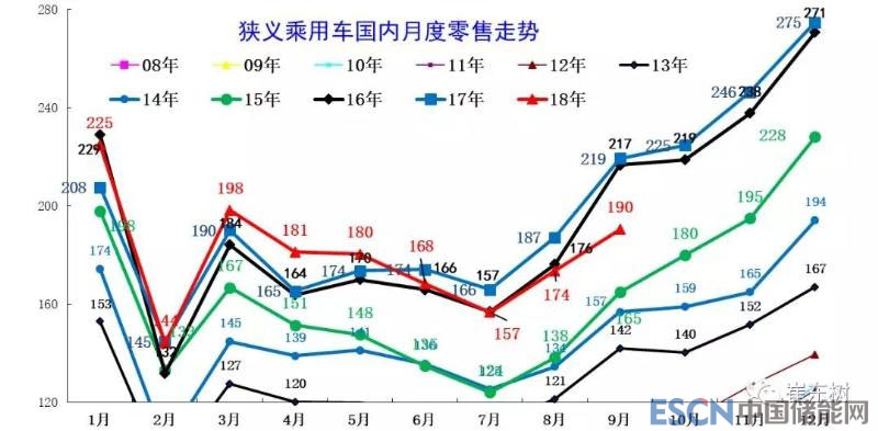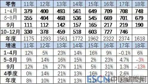 18年9月零售157臺,較2017年9月下滑9萬臺,相對6月的同比減量6萬臺稍有增長,體現(xiàn)18年春季市場的增長動力嚴(yán)重不強(qiáng),增長線路與15年類似,未來能否快速拉升值得期待,但太難了。
