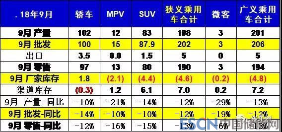 9月車市產(chǎn)銷增速偏低稍低于預(yù)期增速,其中的SUV市場增速貢獻(xiàn)度減小,而MPV的9月增速下滑帶來車市的增速偏低,9月的轎車零售增速-14%弱于于18年均增速3%較多,MPV的調(diào)整力度大,MPV因素形成較大的車市下滑影響。SUV零售表現(xiàn)也是較差。