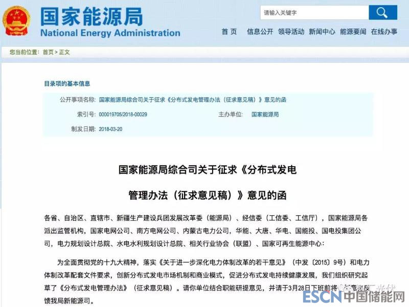 2018年3月20日,國家能源局下發(fā)《分布式發(fā)電管理辦法(征求意見稿)》。