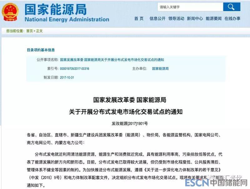 2018年1月3日,國家發(fā)展改革委 國家能源局有下發(fā)了《分布式發(fā)電市場化交易試點的補充通知》