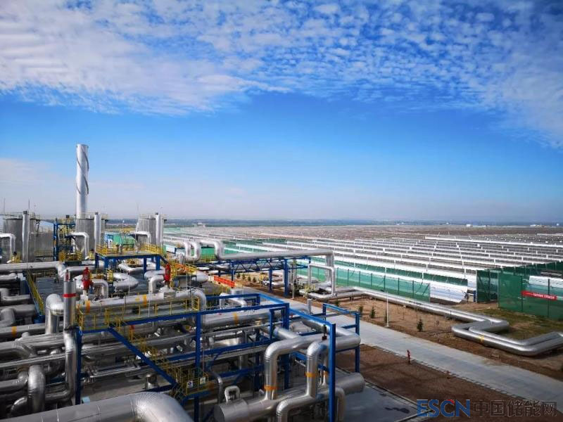 而佇立在儲熱島的熔融鹽儲罐,直徑達(dá)42米,是亞洲最大的熔融鹽儲熱罐。德令哈項目全部采用槽式導(dǎo)熱油太陽能熱發(fā)電技術(shù),配備了一套低成本、大容量、無污染的儲能系統(tǒng),當(dāng)光照不足時,存貯的熱量可以繼續(xù)發(fā)電,實現(xiàn)24小時連續(xù)穩(wěn)定發(fā)電,對地區(qū)電網(wǎng)的穩(wěn)定性起到極大的改善作用。