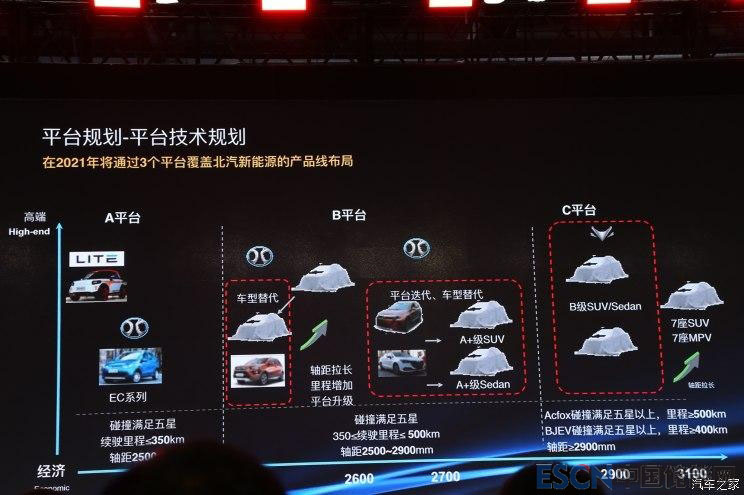 在隨后發(fā)布的“2025中長(zhǎng)期技術(shù)規(guī)劃”,北汽新能源對(duì)公司未來(lái)技術(shù)平臺(tái)、動(dòng)力系統(tǒng)發(fā)展等進(jìn)行了介紹。平臺(tái)技術(shù)規(guī)范方面,在2021年將通過(guò)3個(gè)平臺(tái)覆蓋北汽新能源的產(chǎn)品線布局;電池系統(tǒng)方面,按照整車(chē)平臺(tái)規(guī)劃,逐步推動(dòng)動(dòng)力電池系統(tǒng)的平臺(tái)化,并在2020年末完成電池Pack與整車(chē)平臺(tái)的匹配;動(dòng)力總成方面,自2020年起逐步實(shí)現(xiàn)中平臺(tái)電機(jī)的車(chē)型覆蓋,2021年開(kāi)始進(jìn)行小平臺(tái)電機(jī)的車(chē)型覆蓋;控制架構(gòu)平臺(tái)方面,利用2套控制架構(gòu)實(shí)現(xiàn)全系列產(chǎn)品的覆蓋,隨著Eth技術(shù)的掌握,2022年實(shí)現(xiàn)下一代架構(gòu)的升級(jí)。