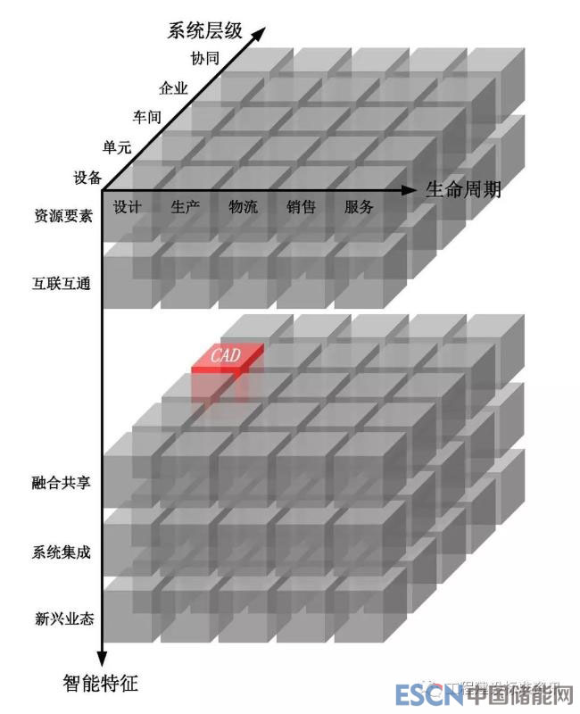 智能制造系統(tǒng)架構(gòu)通過(guò)三個(gè)維度展示了智能制造的全貌。為更好的解讀和理解系統(tǒng)架構(gòu),以計(jì)算機(jī)輔助設(shè)計(jì)(CAD)、工業(yè)機(jī)器人和工業(yè)網(wǎng)絡(luò)為例,詮釋智能制造重點(diǎn)領(lǐng)域在系統(tǒng)架構(gòu)中所處的位置及其相關(guān)標(biāo)準(zhǔn)。