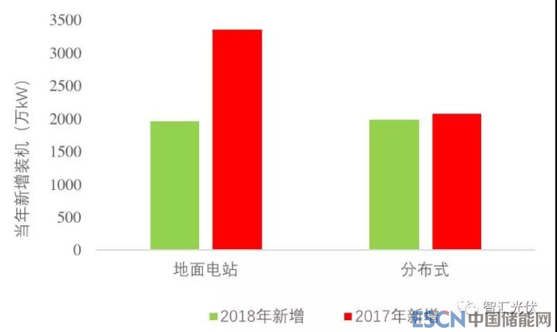 圖:2017、2018年分布式、地面新增裝機(jī)對比