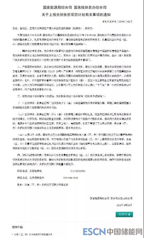 中國(guó)儲(chǔ)能網(wǎng)訊:國(guó)家能源局、國(guó)務(wù)院扶貧辦今日聯(lián)合發(fā)布《關(guān)于上報(bào)光伏扶貧項(xiàng)目計(jì)劃有關(guān)事項(xiàng)的通知》(以下簡(jiǎn)稱《通知》),要求各省、自治區(qū)、直轄市及新疆生產(chǎn)建設(shè)兵團(tuán)發(fā)展改革委(能源局)、扶貧辦根據(jù)光伏扶貧有關(guān)要求,組織上報(bào)本省(區(qū)、市)脫貧攻堅(jiān)期間擬建光伏扶貧項(xiàng)目計(jì)劃。