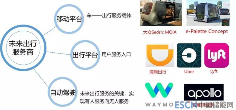 因此,從未來出行定義的角度來看,未來出行服務(wù)商應(yīng)具備三大核心要素:移動(dòng)平臺(tái)(車)、出行平臺(tái)(用戶服務(wù)入口)和自動(dòng)駕駛技術(shù)。未來的車將是多功能移動(dòng)平臺(tái),車內(nèi)部可以根據(jù)不同需求進(jìn)行改造,也可以根據(jù)不同需求進(jìn)行載客、運(yùn)輸、銷售商品等功能。如豐田展出的可用于移動(dòng)、物流、產(chǎn)品銷售等多用途的移動(dòng)服務(wù)專用平臺(tái)“e-Palette Concept”,其車內(nèi)可以搭載各種設(shè)備從而建成不同的場景,來滿足不同消費(fèi)者的各種需求,包括配送快遞、移動(dòng)辦公室、娛樂場所、餐飲服務(wù)等多種場景,為消費(fèi)者提供了更加私密、方便快捷的體驗(yàn)。出行平臺(tái)是用戶服務(wù)的入口,未來掌握著大量的用戶資源,如目前的滴滴、Uber、Lyft、Grab、Taxify、Ola等以APP形式存在的網(wǎng)約車平臺(tái),Car2go、DriveNow、Evcard、Gofun、盼達(dá)用車、易開出行等分時(shí)租賃平臺(tái)。未來的出行平臺(tái)將聚合網(wǎng)約車、出租車、汽車租賃、共享單車、公交、地鐵等多種出行方式,但也不排除性一些單一性平臺(tái)的存在。自動(dòng)駕駛技術(shù)和解決方案是實(shí)現(xiàn)未來出行的關(guān)鍵,未來的車一定是自動(dòng)駕駛的,這樣既可提升出行效率和提高車輛安全性,減少交通事故,也能大幅度降低交通出行成本。目前,這三個(gè)要素還掌握在不同主體手中,移動(dòng)平臺(tái)由整車制造商提供,出行平臺(tái)由出行服務(wù)商控制,自動(dòng)駕駛技術(shù)和解決方案由博世、安波福、Mobileye以及互聯(lián)網(wǎng)科技公司谷歌Waymo、百度阿波羅等主導(dǎo),部分車企和出行服務(wù)商也在積極開展自動(dòng)駕駛技術(shù)的研發(fā)、測試?,F(xiàn)階段三個(gè)要素的發(fā)展還不夠成熟,未來誰能夠在移動(dòng)平臺(tái)、出行平臺(tái)和自動(dòng)駕駛?cè)矫姘l(fā)展成熟,誰就有可能引領(lǐng)未來的出行服務(wù)市場。