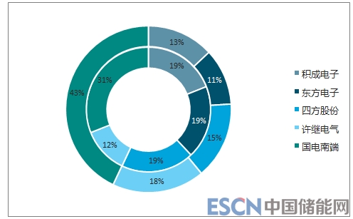 2016和2017年國電南瑞在主站系統(tǒng)市占率圖