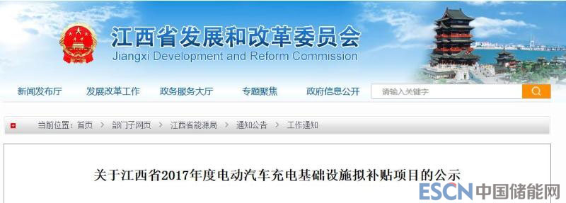 關于江西省2017年度電動汽車充電基礎設施擬補貼項目的公示