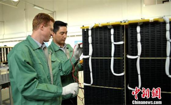 車間生產(chǎn)線上技術(shù)人員正在測試組裝好的電容模塊。劉忠俊 攝