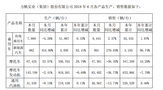 新能源乘用車(chē)方面,力帆股份6月生產(chǎn)982輛,1-6月累計(jì)生產(chǎn)3495輛,累計(jì)同比增長(zhǎng)82.41%;6月銷(xiāo)售801輛,1-6月累計(jì)銷(xiāo)售3195輛,累計(jì)同比增長(zhǎng)96.74%。