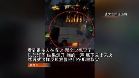 張女士表示,當晚七點左右,她帶著小孩來到沙井文化藝術中心的圖書館逛逛,接著就看到了視頻里的一幕,這輛白色的電動小面包車車底出現明火,管理處人員和保安人員隨即拿著滅火器滅火。