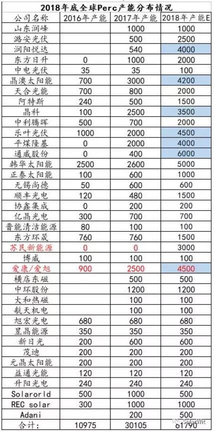 附贈(zèng)一個(gè)小彩蛋(2018年底perc產(chǎn)能統(tǒng)計(jì)):