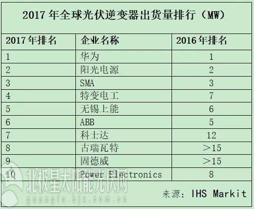 在2017年全球逆變器105GW出貨量中,中國市場獨占55GW。搶占地緣優(yōu)勢,此次逆變器十強榜單中,“中國軍團”共拿下七席。