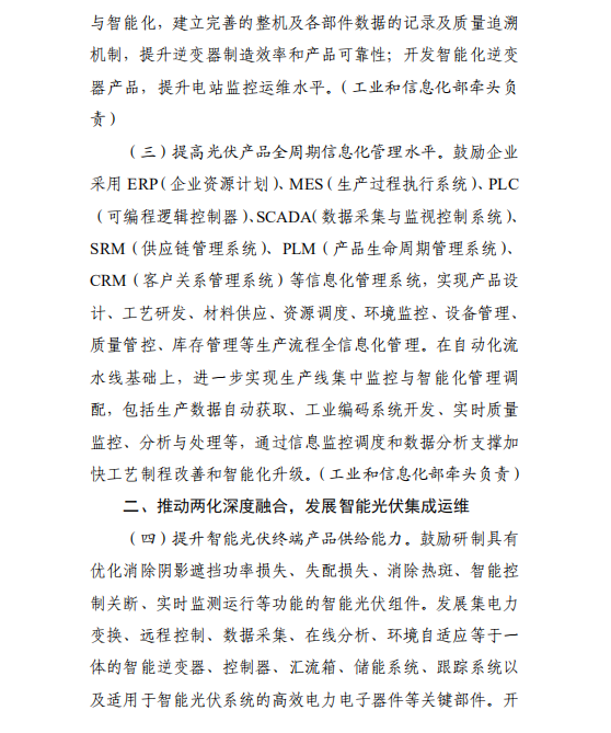 此外,《行動計(jì)劃》提出到2020年,行業(yè)自動化、信息化、智能化取得明顯進(jìn)展;軟件和裝備等競爭力顯著提升;智能光伏產(chǎn)品形成品牌效應(yīng)等多方面的具體目標(biāo)。