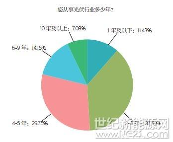參與調(diào)研人群大多數(shù)為2-3年,可見(jiàn)近2-3年間,行業(yè)影響力擴(kuò)大,越來(lái)越多的人開(kāi)始關(guān)注并參與光伏行業(yè)。