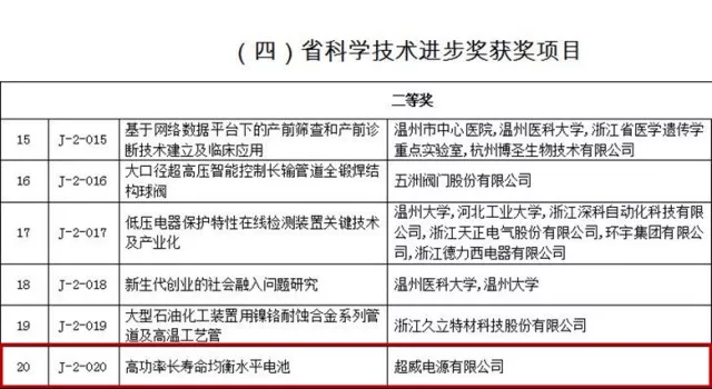 中國儲能網(wǎng)訊:4月11日,2017年度浙江省科學(xué)技術(shù)獎勵大會在浙江省人民大會堂舉行,由超威集團承擔(dān)的省級新產(chǎn)品試制計劃項目“高功率長壽命均衡水平電池”項目獲得浙江省科學(xué)技術(shù)進步二等獎,受到大會隆重表彰。這是超威集團堅持科技創(chuàng)新、加快轉(zhuǎn)型升級結(jié)出的又一碩果。