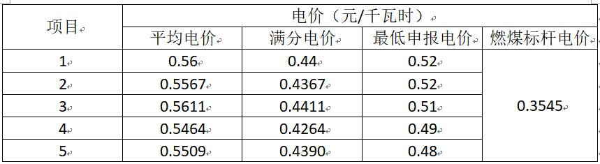 以下為各標(biāo)段的平均電價、滿分電價、最低申報電價和當(dāng)?shù)厝济簶?biāo)桿電價:
