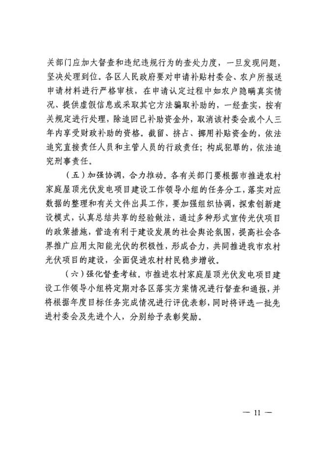 同時(shí),為鼓勵(lì)農(nóng)村居民家庭積極參與及配合開(kāi)展屋頂光伏發(fā)電項(xiàng)目建設(shè),在項(xiàng)目建成后市財(cái)政一次性給予每家農(nóng)戶(hù)3000元獎(jiǎng)勵(lì)資金。