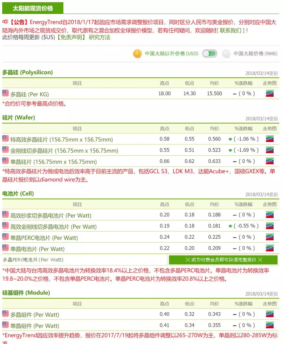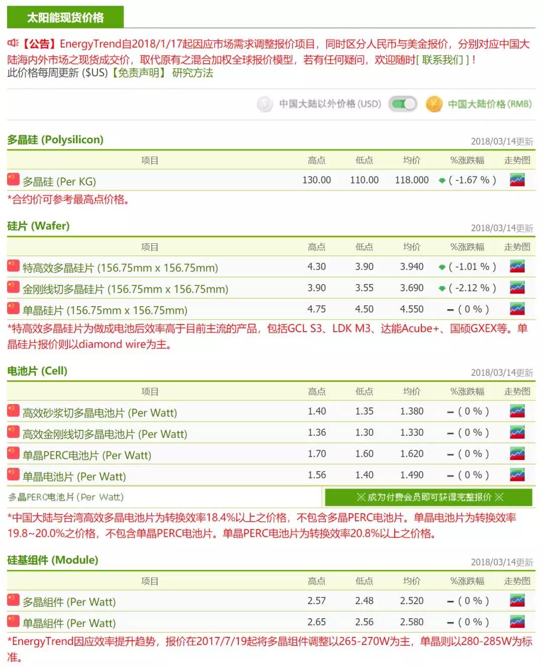 終端雖無明顯動作,但由于整體市場氣氛看好,因此價格仍然維持穩(wěn)定。本周多晶組件價格在RMB2.5-2.57/W,單晶組件價格在RMB2.57-2.62/W。