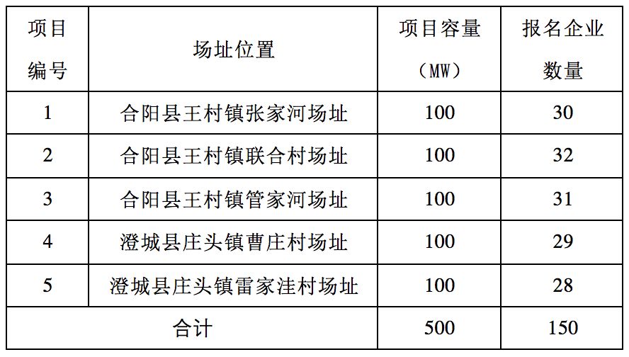 根據(jù)《壽陽光伏發(fā)電應(yīng)用領(lǐng)跑基地2017年競爭優(yōu)選公告》,截止至2018年2月16日17時(shí),共接收34家企業(yè)報(bào)名,各項(xiàng)目報(bào)名企業(yè)數(shù)量見下表。