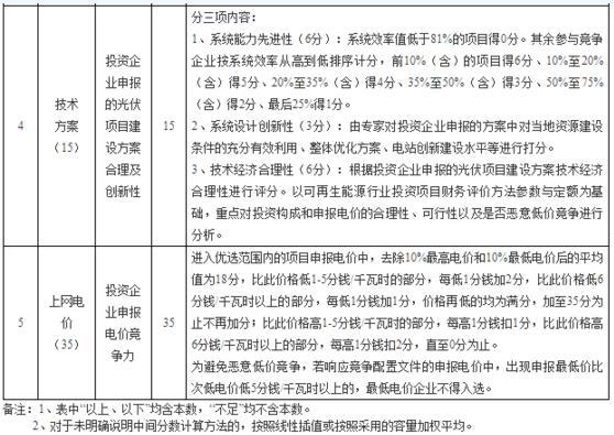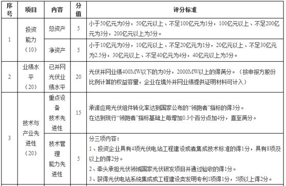 通過資格準入的投資企業(yè)由專家組按照國家能源局文件要求,根據(jù)評分標準表進行客觀評分并分項目排序。