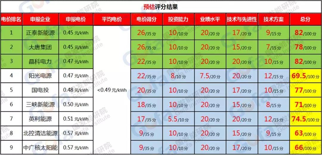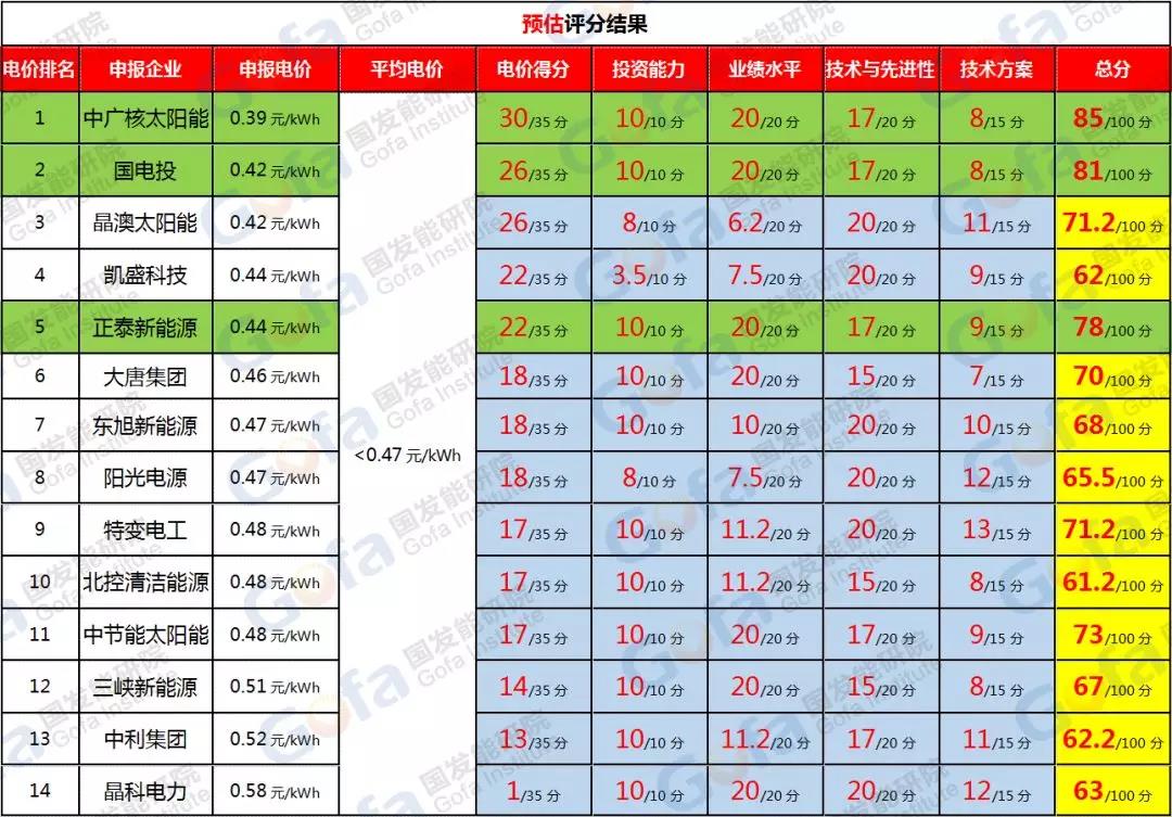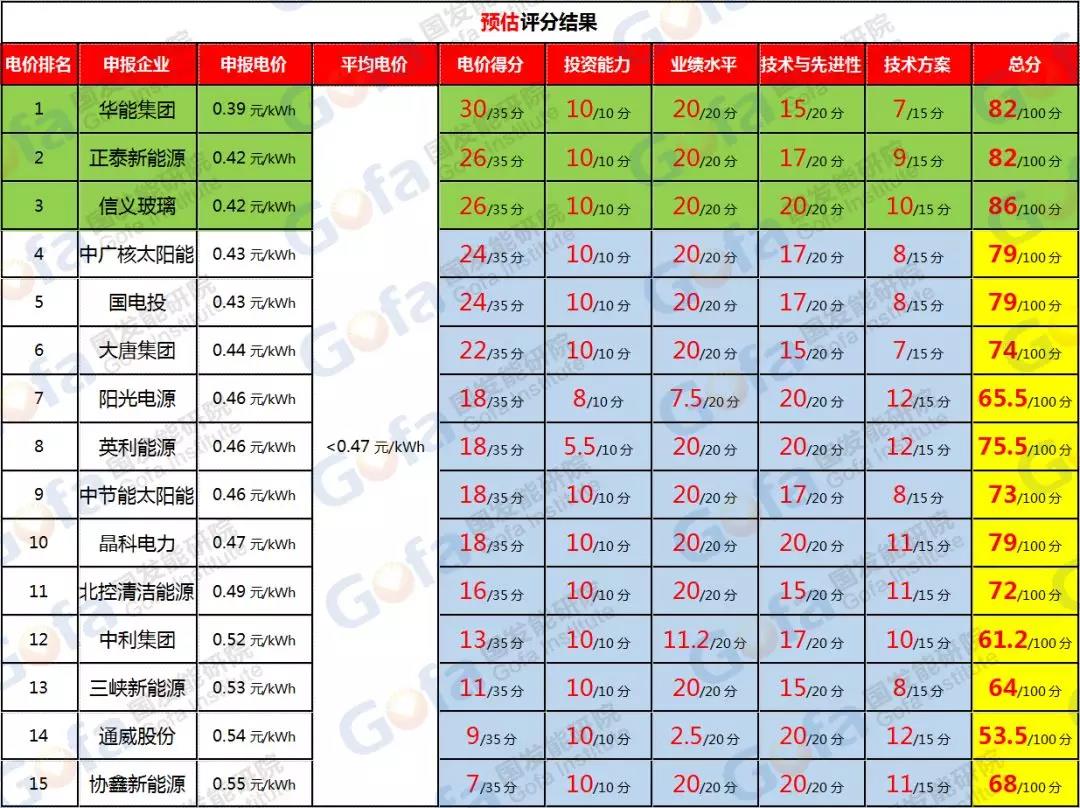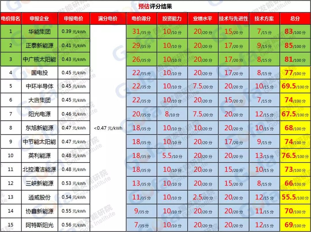 1)0.39元/kWh由華能、中廣核兩個單位投出,兩家央企的業(yè)績項(20分)、資產(chǎn)項(10分)應(yīng)該都會得滿分,因此,應(yīng)該是在設(shè)備(15分)、技術(shù)方案(15分)、企業(yè)專利(5分)這三方面失分的。
