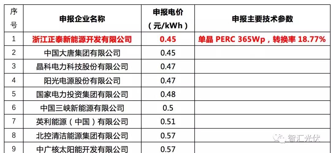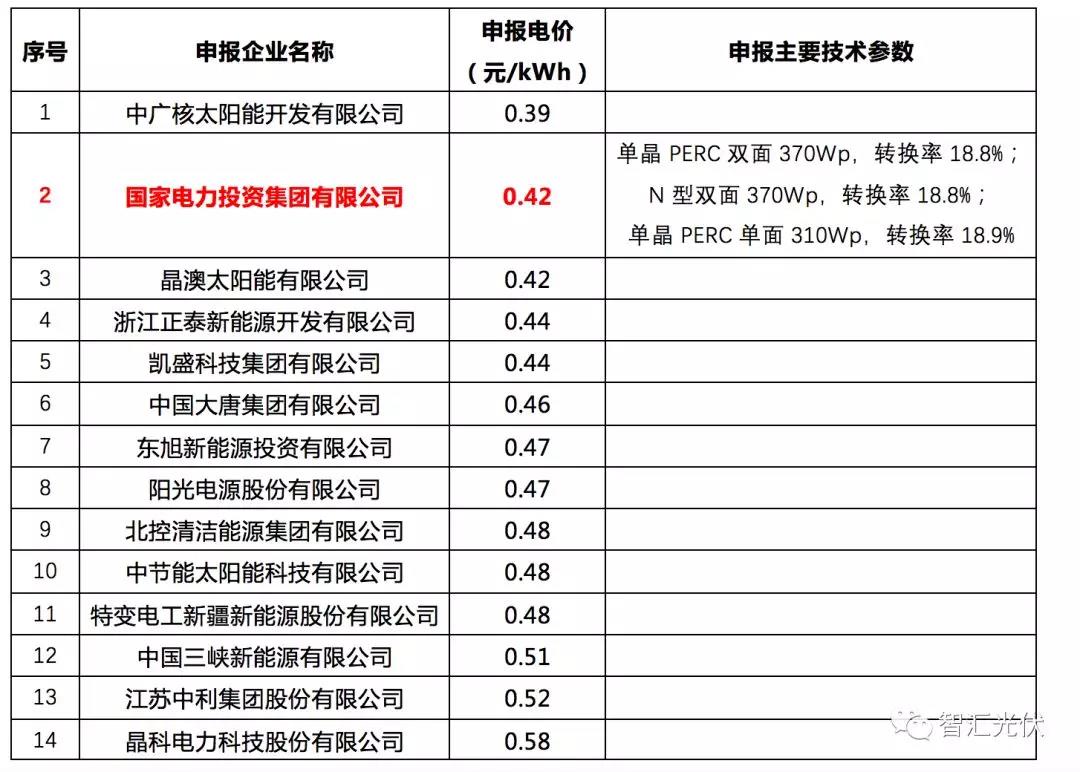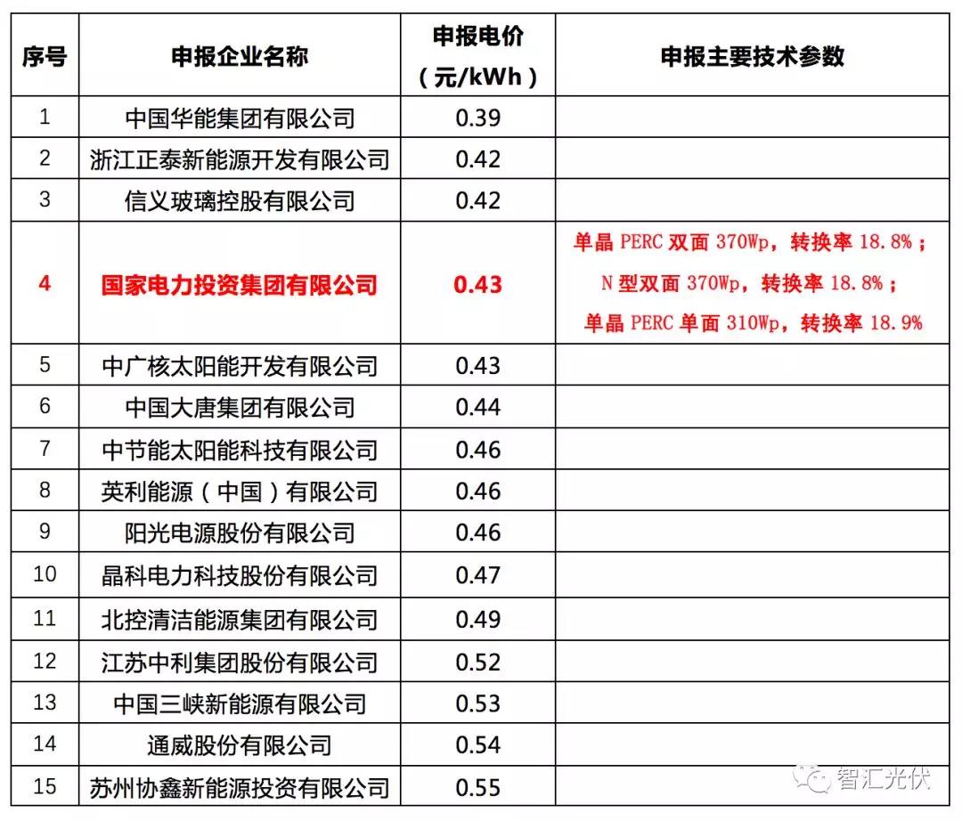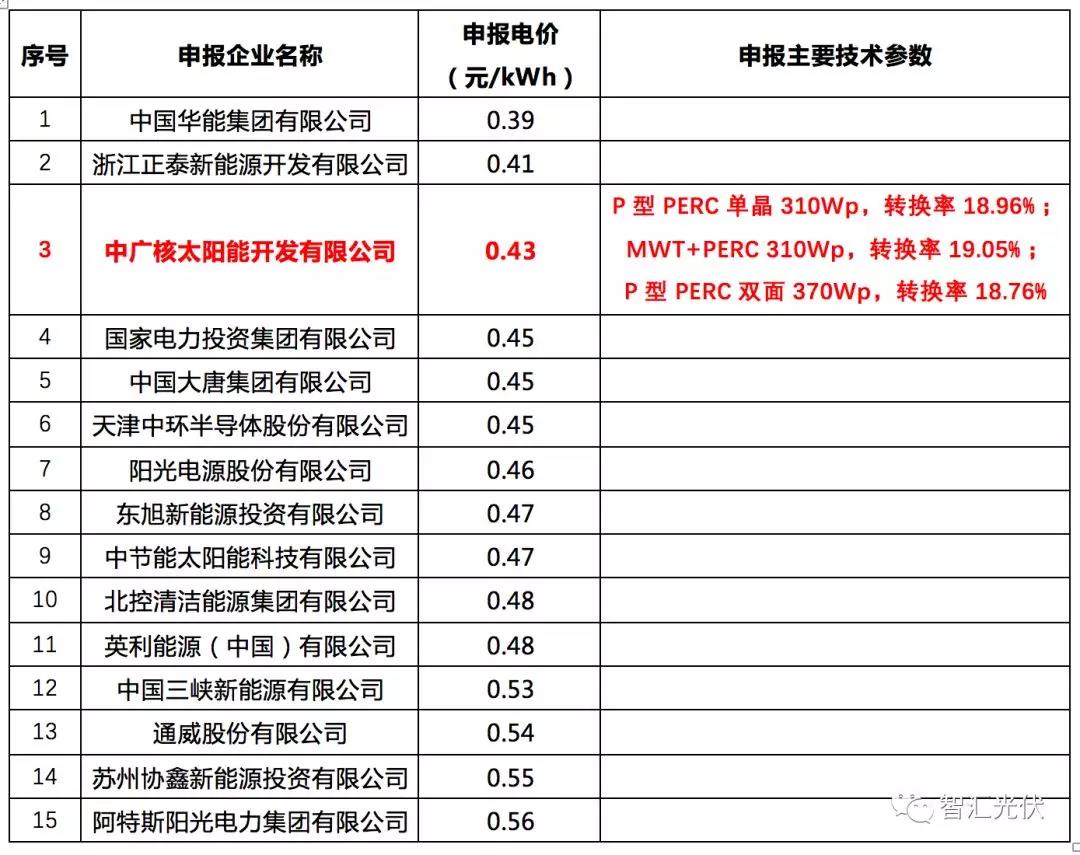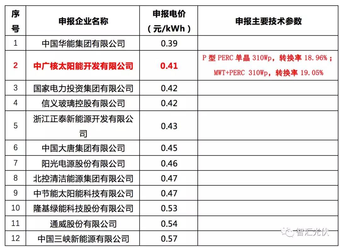 5個項目中,4個項目的最低價位0.39元/kWh,3個由華能投出,1個由中廣核投出,這4個最低價均未中標(biāo)。