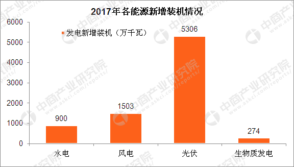 新增裝機方面,2017年全國水電新增裝機約900萬千瓦;風電新增裝機1503萬千瓦,繼續(xù)保持穩(wěn)步增長勢頭,中東部和南方地區(qū)占比50%,風電開發(fā)布局進一步優(yōu)化,山東、河南、陜西、山西新增裝機均超過100萬千瓦;生物質發(fā)電新增裝機274萬千瓦,累計裝機達到1488萬千瓦,同比增長22.6%;全年生物質發(fā)電量794億千瓦時,同比增長22.7%,繼續(xù)保持穩(wěn)步增長勢頭;受上網(wǎng)電價調整等多重因素影響,2017年光伏發(fā)電市場規(guī)??焖贁U大,新增裝機5306萬千瓦,其中,光伏電站3362萬千瓦,同比增加11%;分布式光伏1944萬千瓦,同比增長3.7倍。