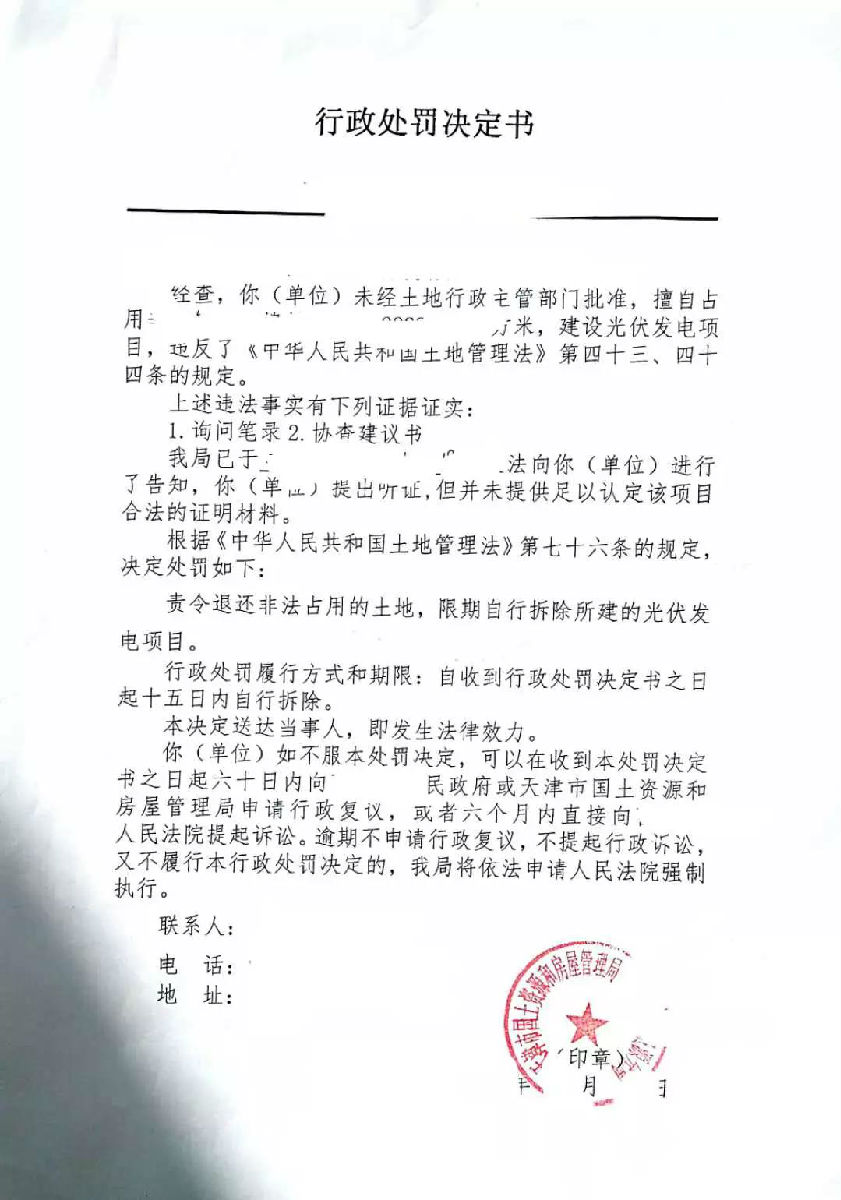 先回顧下2016-17年天津幾個光伏電站收到的處罰單吧: