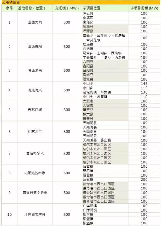3月13日,內(nèi)蒙古達拉特旗、河北海興及陜西渭南等三地項目截標;3月14日,江蘇泗洪、寶應(yīng)等兩地項目截標;3月15日,山西大同二期及壽陽等兩地項目截標;3月17日,青海格爾木、德令哈等兩地項目截標。逾期遞交申報材料的競標公司,將與領(lǐng)跑者項目徹底“拜拜”。