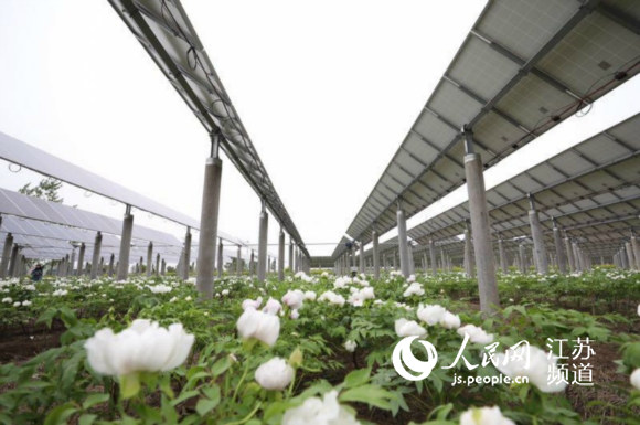 光伏板整齊排列,白牡丹搖曳生姿,幾位農(nóng)民正忙著給牡丹除草松土?!斑@是我們種植的油用牡丹,也是我們探索的農(nóng)光互補(bǔ)新模式?!眳f(xié)鑫新能源副總裁張耀邦指著綿延數(shù)里的牡丹花海說。