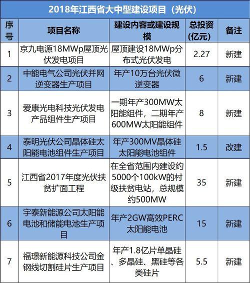 (2)江西省的7個光伏項目,投資金額達到73.27億元。